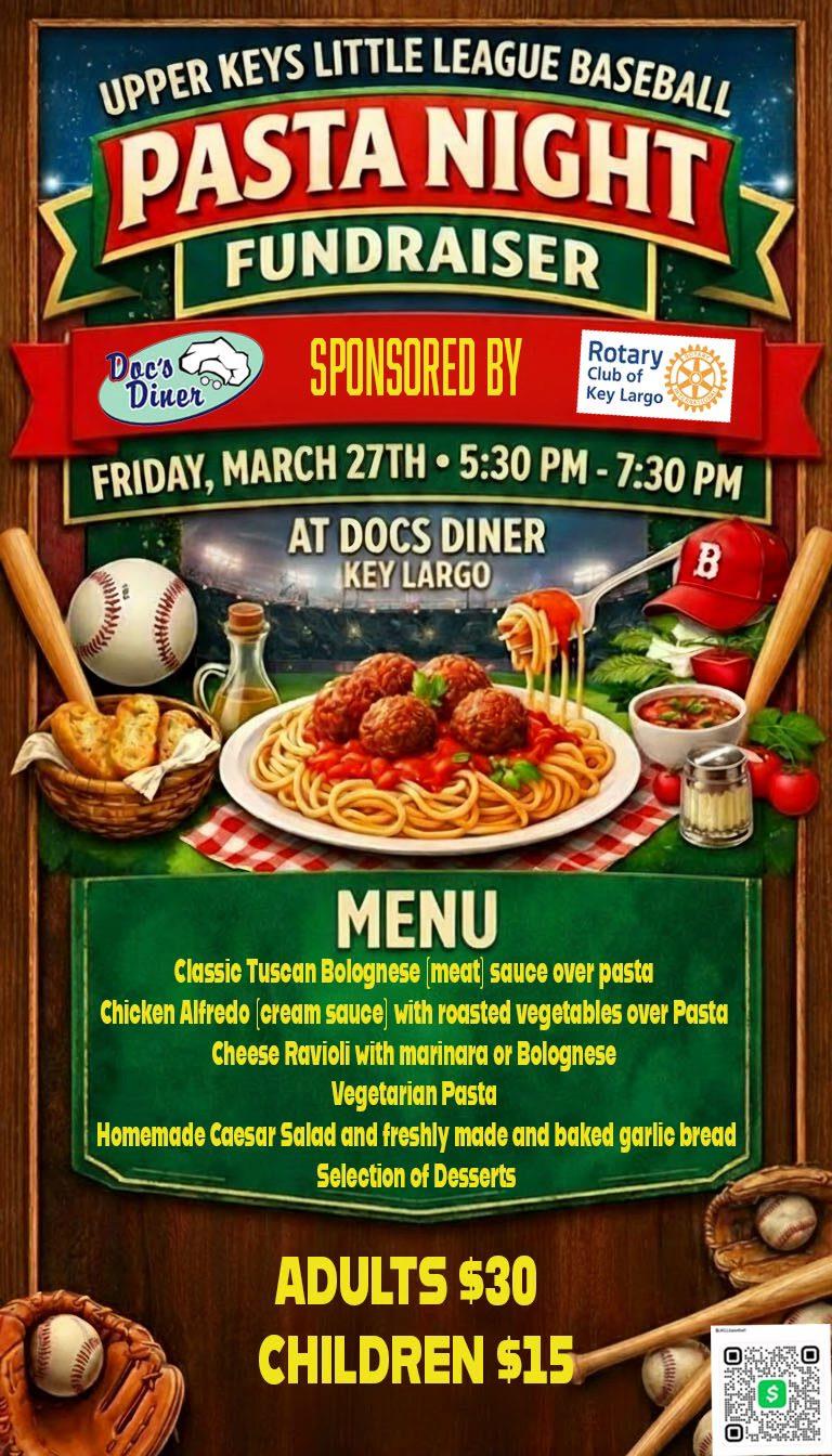 Upper Keys Baseball Pasta Night at Doc's Diner